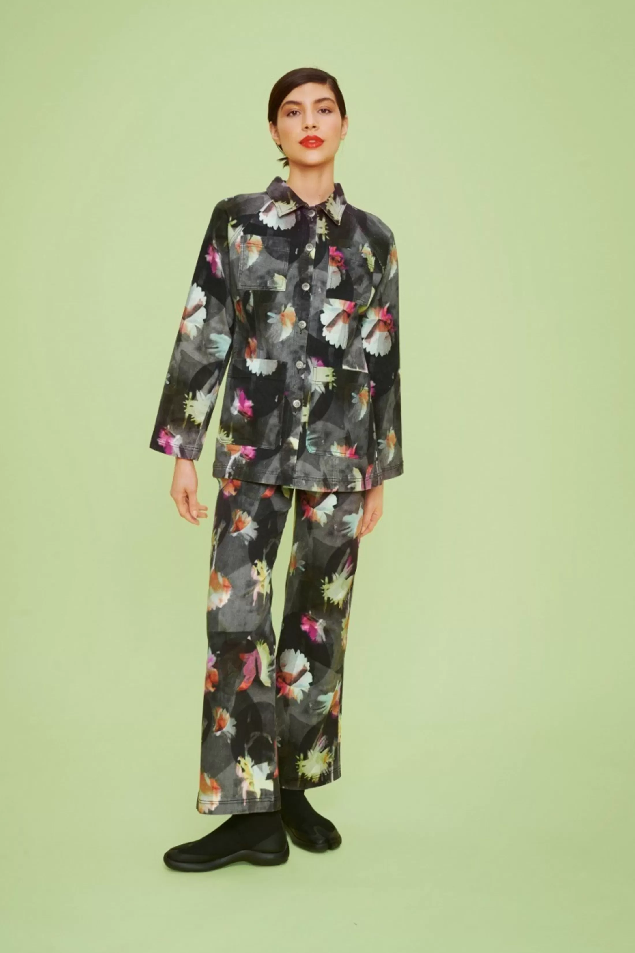 Et Klassisk Jeanssnit Moder Et Abstrakt Blomstermotiv Og Giver Dig Et Smukt Farveindslag I Din Basisgarderobe. Lad Jeans…