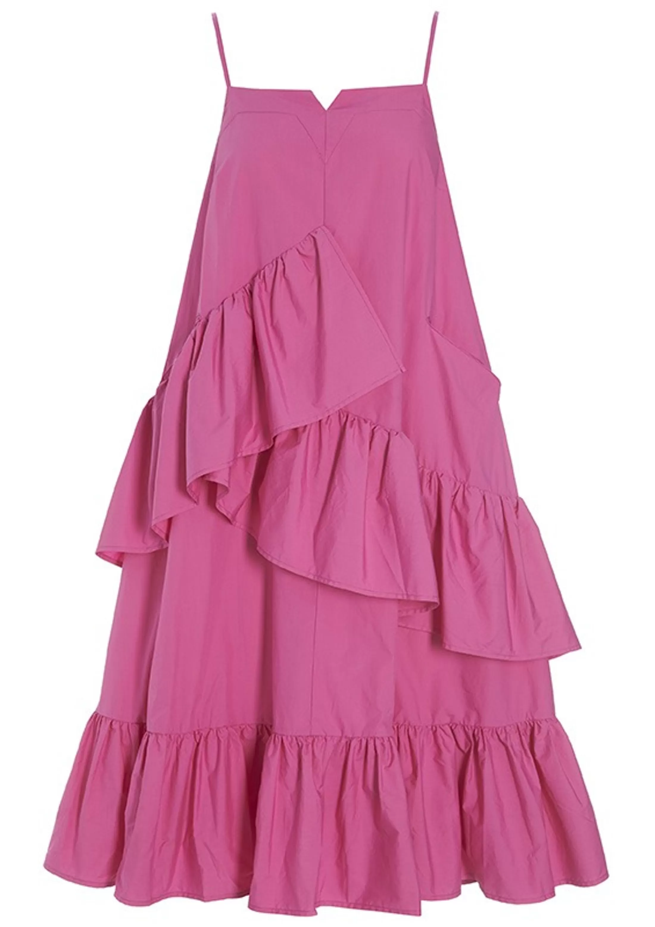 Der Er Fest Og Glade Sommerdage Over Denne Kjole. Flaeserne Snor Sig I En Spiral Ned Ad Skortet Og Giver En Flot Volumen. Du Behover Ikke Saette Andet Til En Et Par Cool Solbriller Og Yndlingssandalerne, Sa Er Du Klaedt Pa Til Det Sode Sommerliv.