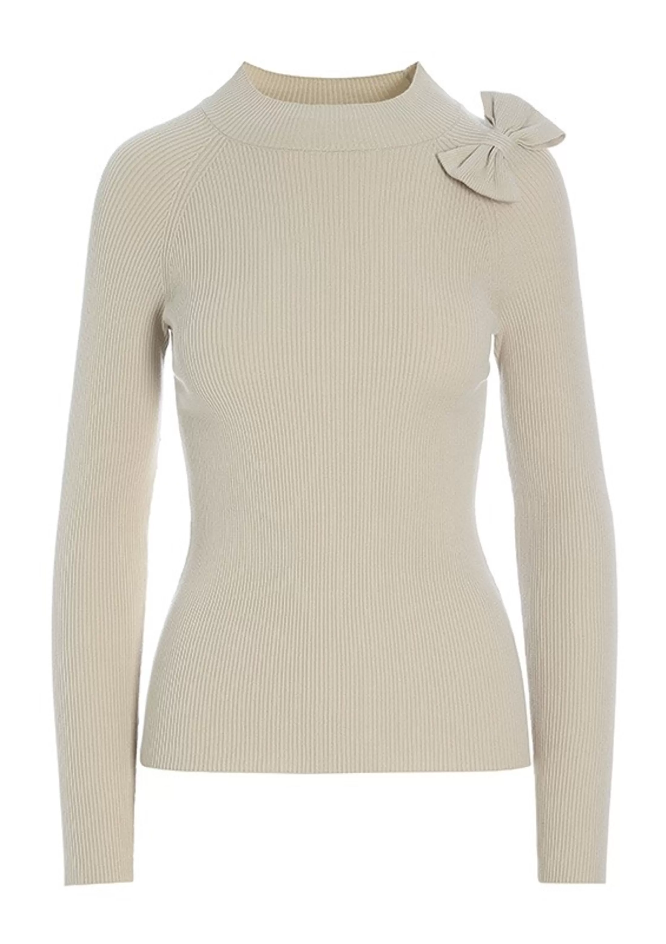 Virkelig Chik Strikbluse Med Et Helt Enkelt Snit Kun Brudt Af Slojfen, Der Er Placeret Ved Den Ene Skulder. En Meget Anv…