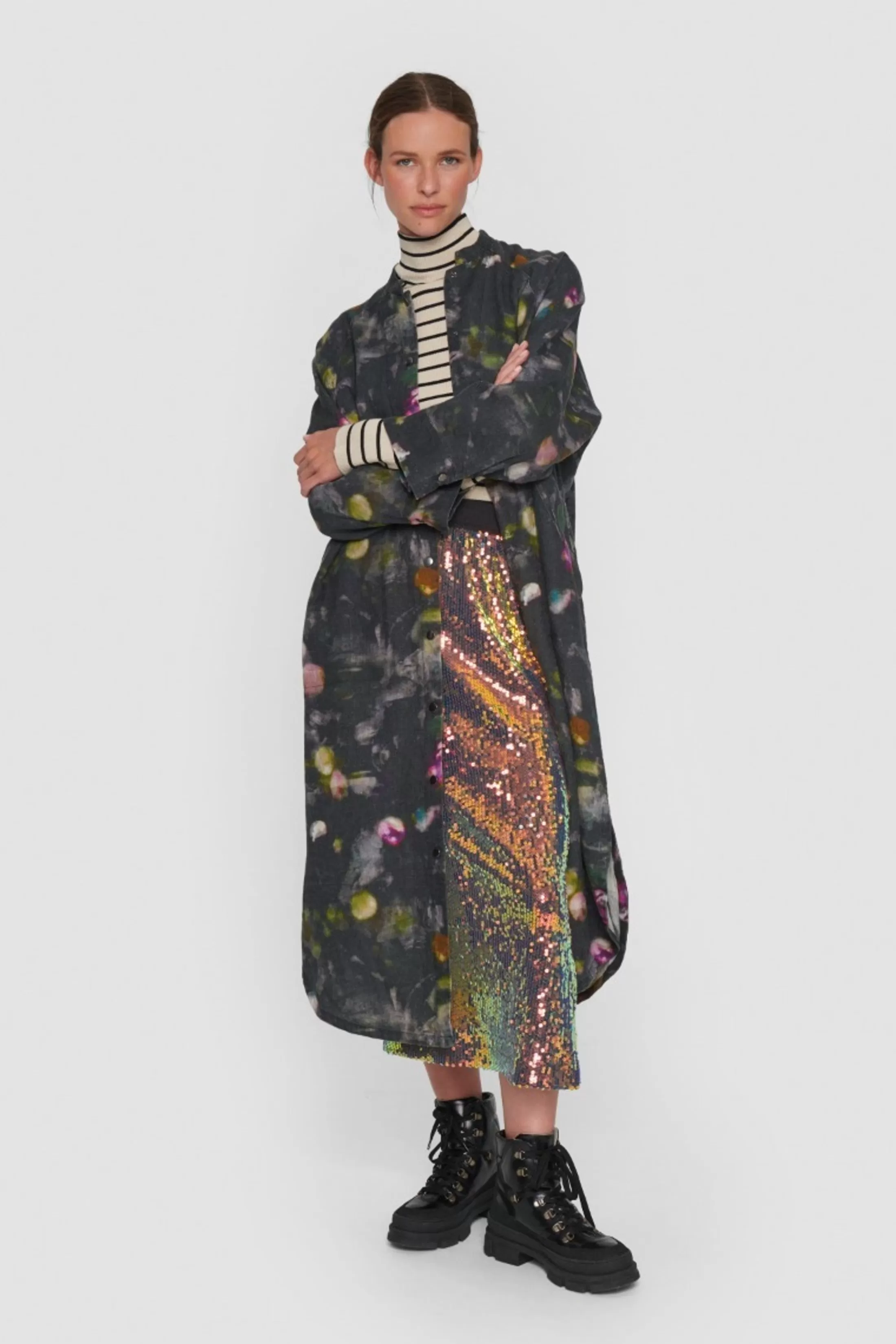 Nederdel Med Et Drommende Douche Monster Og Vidde I Skortet. En Aegte Sommerklassiker, Der Kan Bruges Til Bade Skjorter, T-Shirts Og Bluser. Lad Skoene Afgore Stilen – Tilsat Flade Sandaler Er Den Hverdagssmart Og Med Hoje Haele, Er Du Klar Til En Middag I Byen.